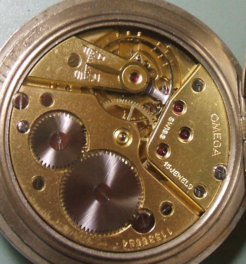 100 years ago a watch was what we call today a pocket watch. By the mid twenties the wristwatch became dominant and the pocket watch was relegated to workmen who couldn’t wear a fragile wristwatch (it wasn’t until the second half of the twentieth century that waterproof and shockproof became standard). This 1948 Omega is designed for the workman, a locomotive engineer in fact. I have another Omega pocket railway watch in this collection, that one from 1966. This one is bulkier and less stylish. The movements (38.5 in this and 161 in the other) look almost identical but the latter is much sleeker and I doubt if any part is interchangeable.
