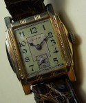 In 1927 wrist watches where just eclipsing pocket watches and small rectangular watches was the rage. Problem was that most manufacturers had not long developed round movements. So fitting a round movement into a rectangular case was a problem. This was achieved by stepping the case down to a slight bulge that is hardly noticeable, and a lovely design that is so characteristic of the age (was the Chrysler building built in the 20’s?).