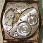 With a gold filled case, a stainless steel back and a basic 7 jewel movement (Elgin 403), this beautiful watch was made for the budget end of the market even though (I’m guessing) would have cost a workingman several weeks pay.