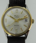This watch from the late 60’s has a stainless steel monocoque case with a gold plated bezel. It uses the very good gold plated ETA 2777 movement. This watch is signed five times including a watermark “w” in the centre of the glass.
