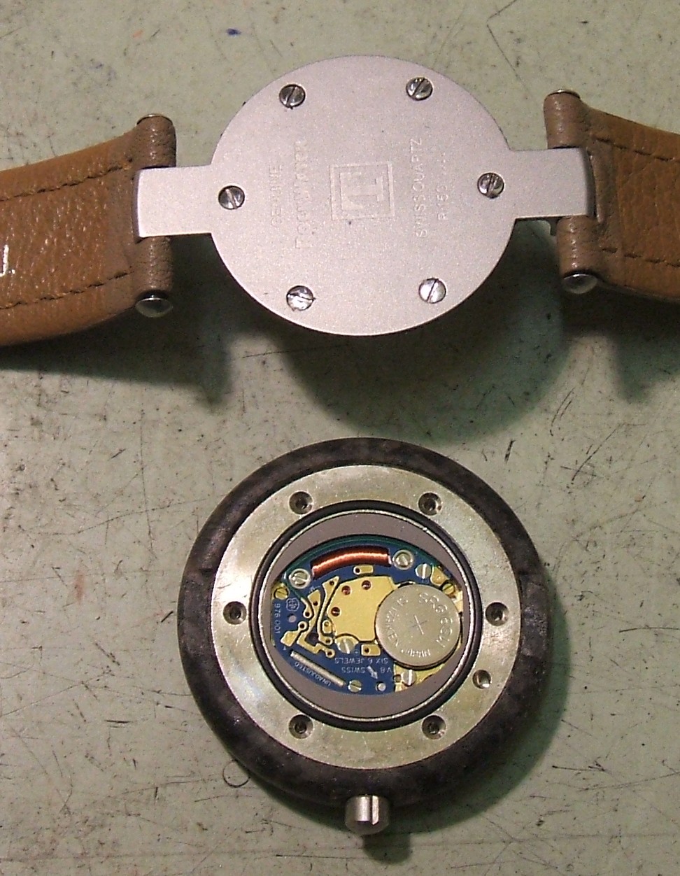 attached to accommodate the strap. The movement is an ETA 976.001 quartz, Tissot had stopped producing their own movements some years previously.
