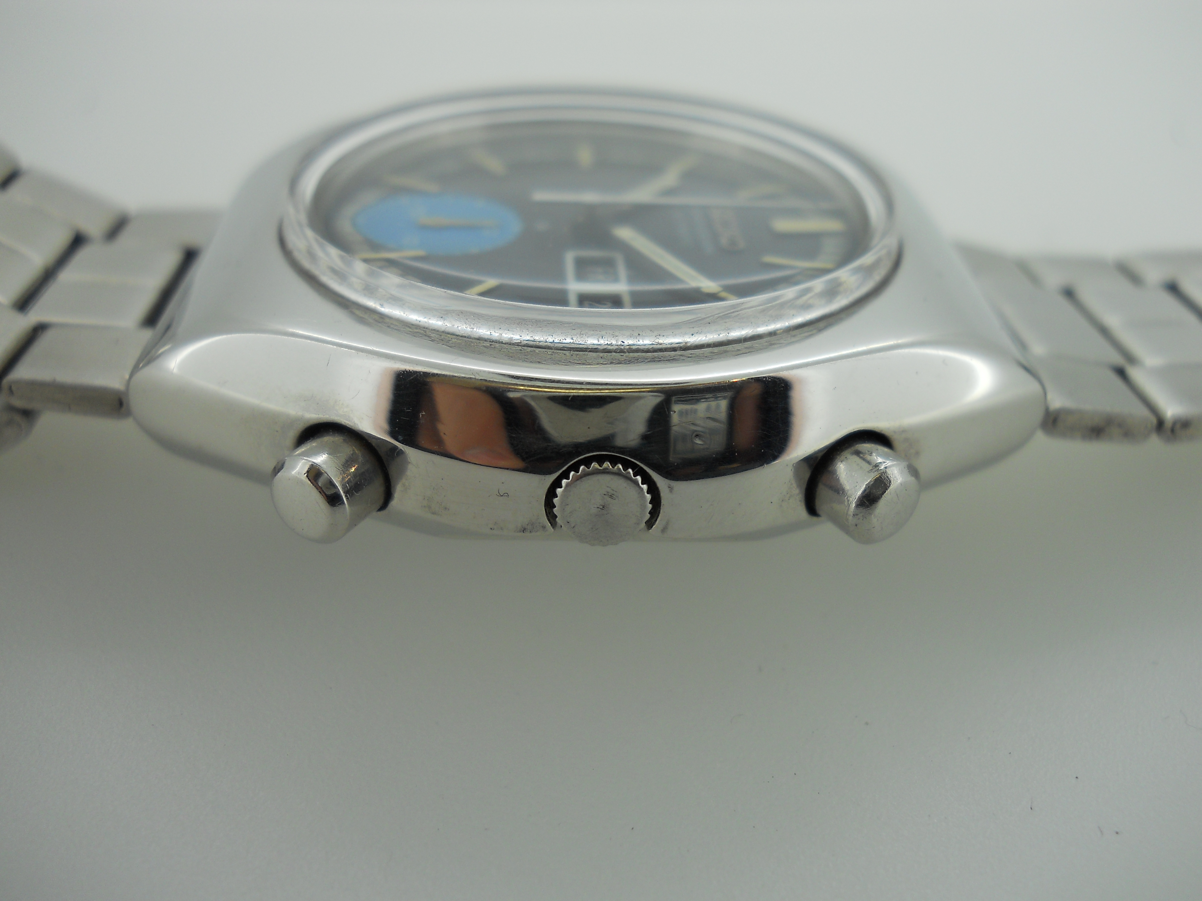 This is as basic as the Seiko chronos got. The movements did not vary at all, the 6139A was superseded by the 6139B sometime in the early 70s with some minor technical changes under the dial but the only difference in the many models that Seiko produced was only in the cases. This one has no bezel, no tachymeter scale only a chapter ring that is part of the dial. It’s also one of the few Seikos of this era with a perspex rather than a crystal glass. So I presume it was the base model.