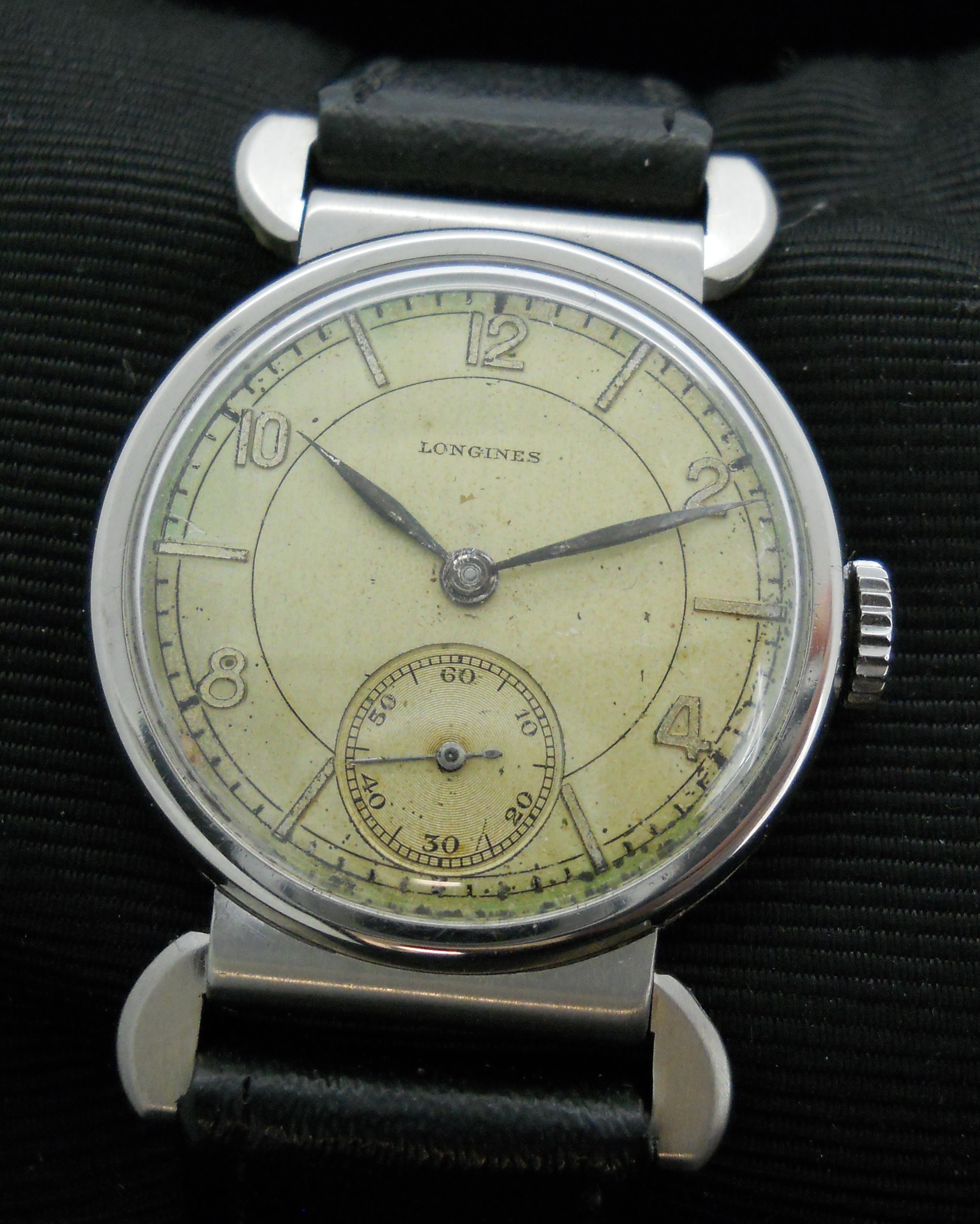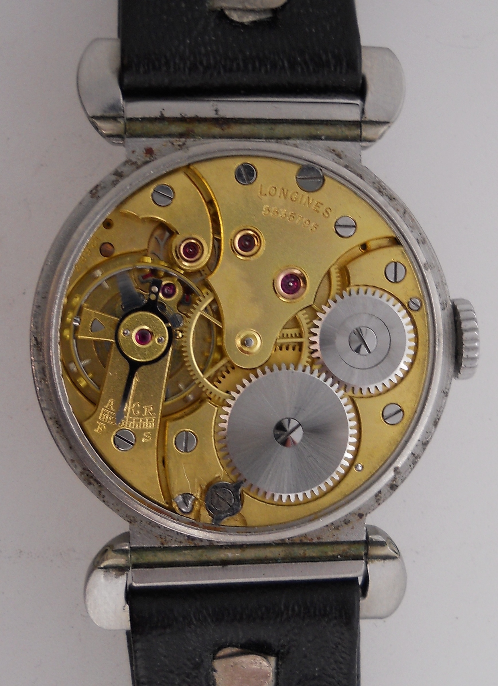This very rare Longines was given to me by my auntie in Italy. It was in very poor condition but the important thing was that it was intact and, to my surprise, the balance staff was not broken. It was a simple restoration; there was a little rust damage that was cleaned up, the movement was overhauled, the case polished up nicely. The glass was the only part I replaced. The only thing I couldn’t improve was the dial without having it repainted and that would have destroyed the watch’s authenticity.