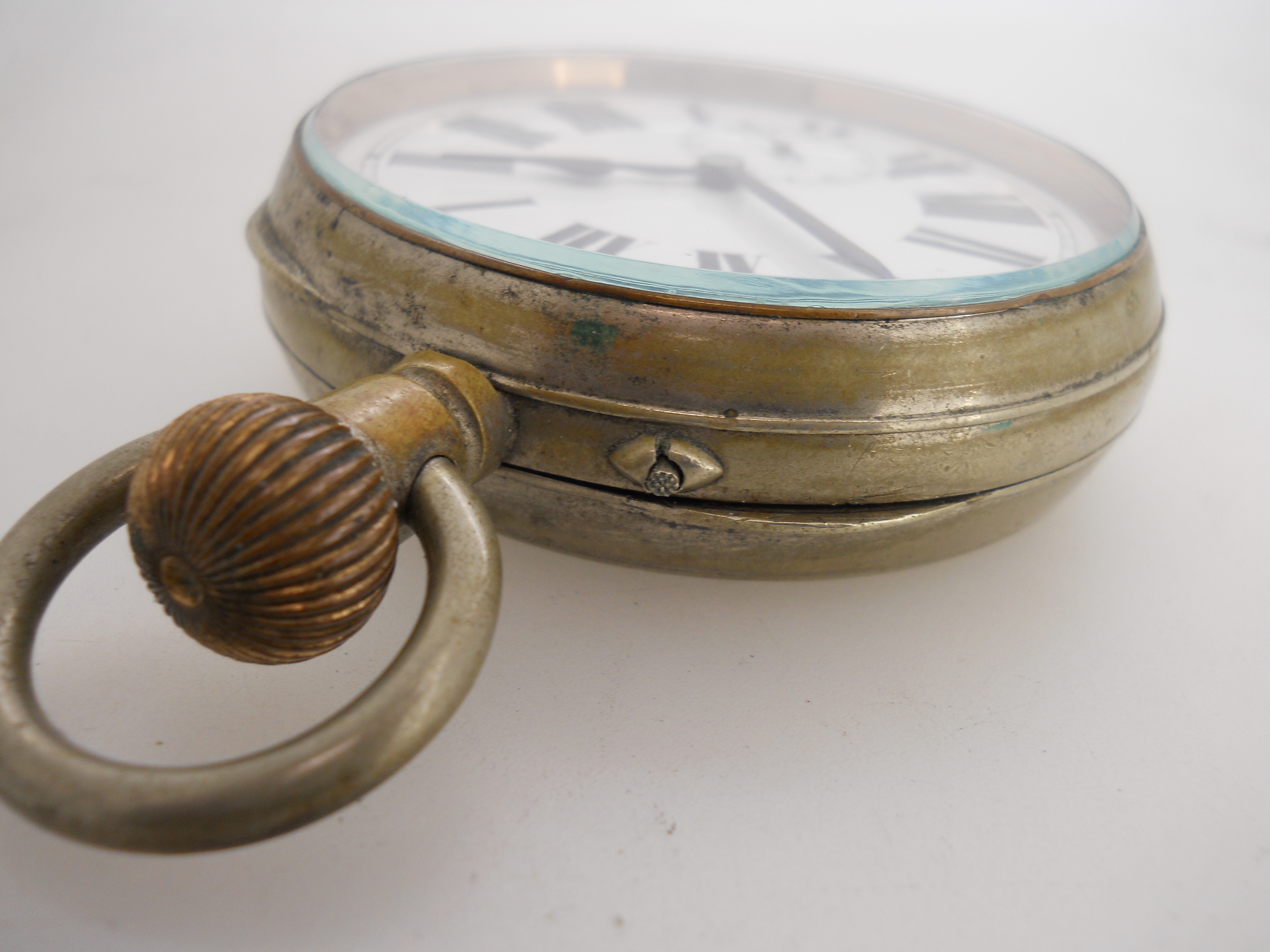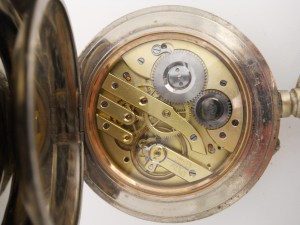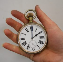 It is an interesting and unique timepiece and it came to me reputed to have been a Scottish stationmaster’s watch. Nothing else is known, it is completely unsigned. It is big, 67mm in diameter and 21mm thick. I found a picture of one on the Science Museum Group website and it was said to have come from The London Midland & Scottish Railway (LMS) which existed from 1923 to 1947.