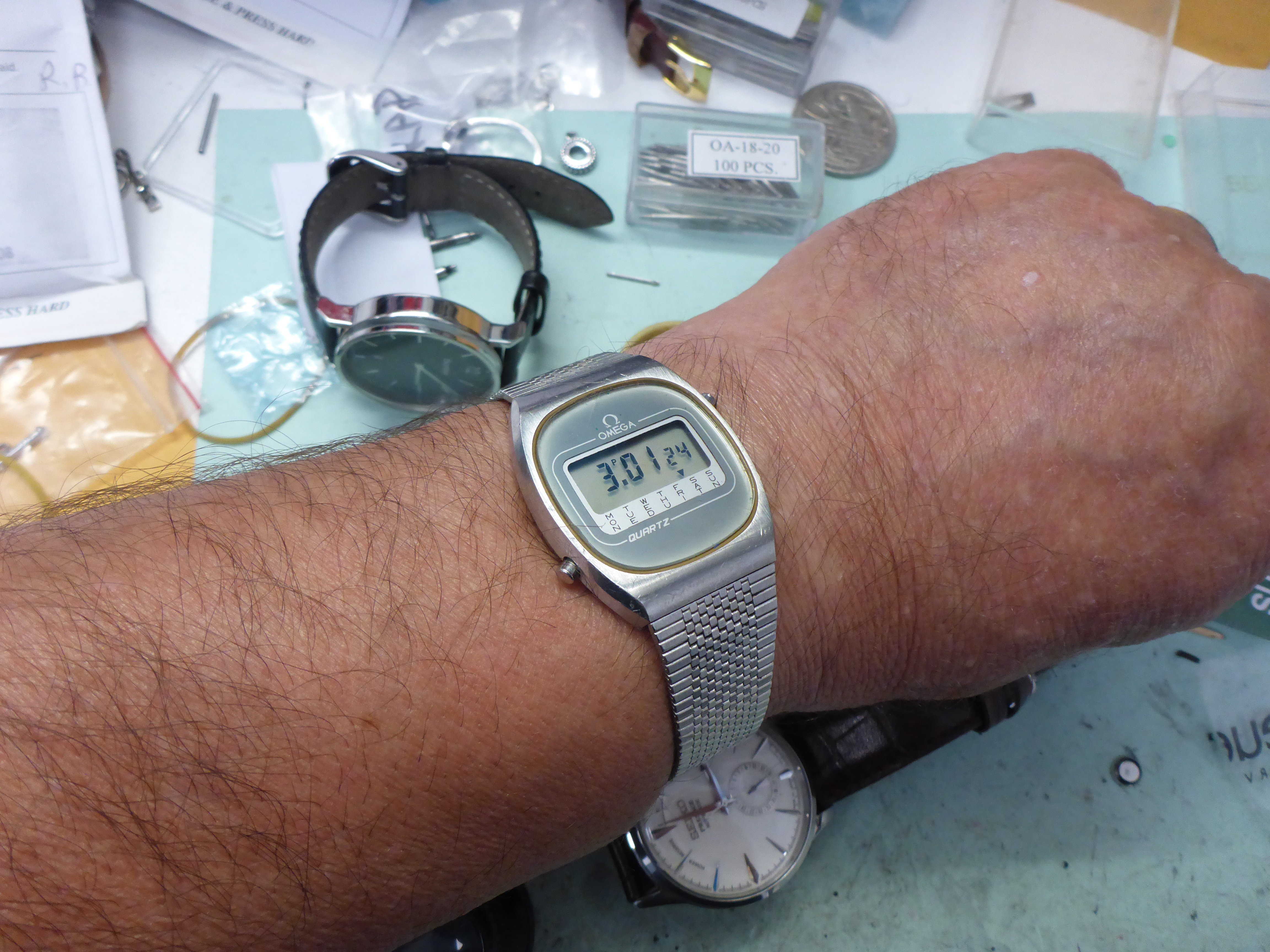 This example, from 1978 is quite basic. Omega trumpeted that the “Omega Quartz Digital: Style, precision, reliability” I agree with the latter two comments, but I don’t agree that it contributes much to style. It was also quite basic, having only day and date function, in addition the full time display, and a light to illuminate the screen.