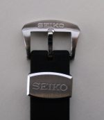 The strap has a beautiful, heavy, strong looking buckle. It also has a beautiful stainless steel keeper. Both buckle and keeper are signed “SEIKO”.