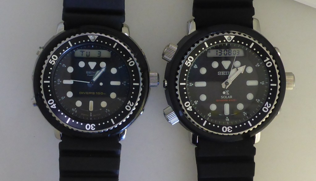 In 1982. Seiko released the divers’ version into the cutting edge, “Duo” range. The Duo combined analogue style and practicality with the multi functionality of digital technology.